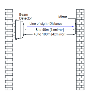 The detector and reflective mirror are installed on both ends of the protected space and in the same horizontal line.