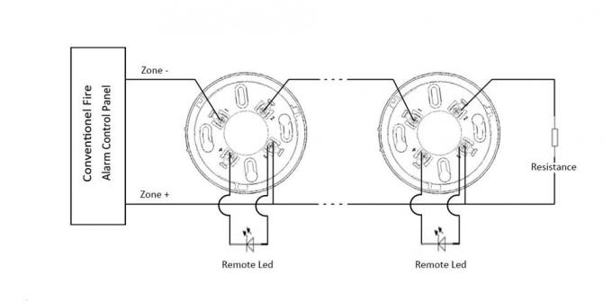 The device is photoelectronic detector uses a state of-the-art optical sensing chamber. This detector is designed to provide open area protection and to be used with most conventional fire alarm control panel.compatible with all brand conventional fire alarm system.
